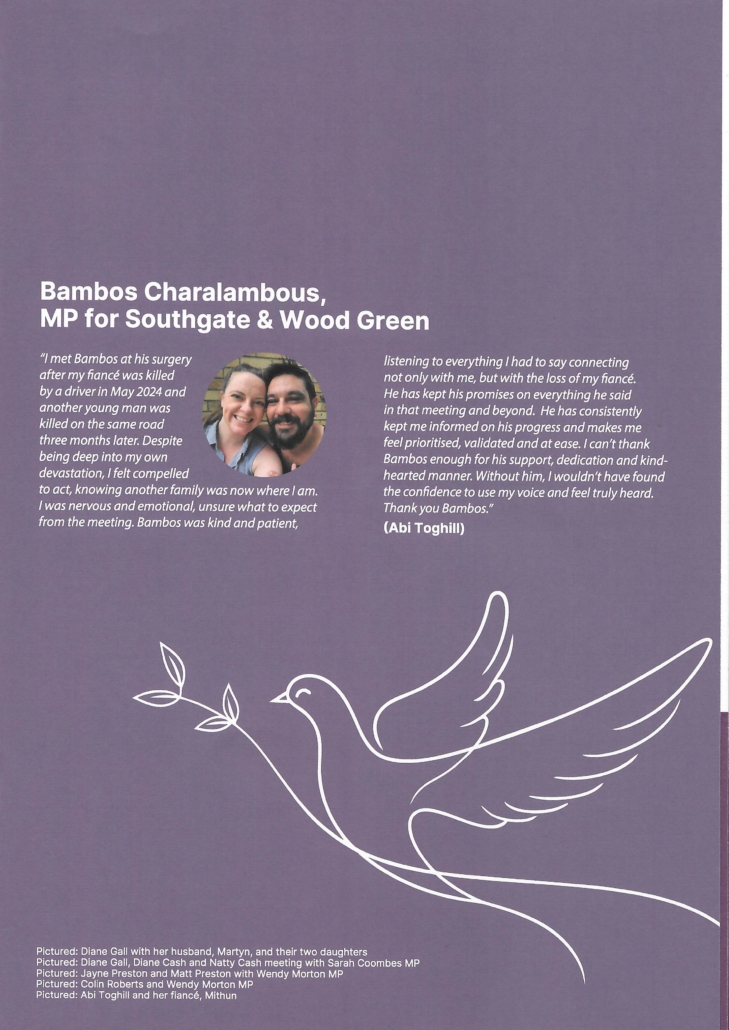 I am proud to support the fantastic work that Abi has been doing, and it is an honour to be featured in RoadPeace’s new guide for MPs on helping constituents after road death or serious injury.