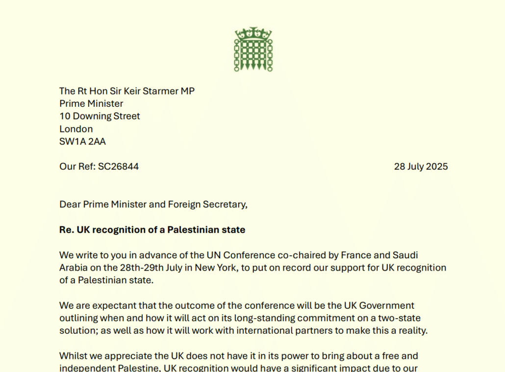 Please see below the letter I have signed to the Prime Minister calling for the recognition of a Palestinian state.